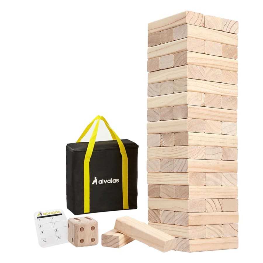 Bring big fun to any gathering with the Giant Tumbling Tower Wooden Block Stacking Game. Build stacks up to 5 feet tall and test steady hands and nerves. Perfect for Birthday Parties, Family Reunions, graduations, church events, and corporate celebrations. Fast setup. Durable wood. Instant excitement. 🎉