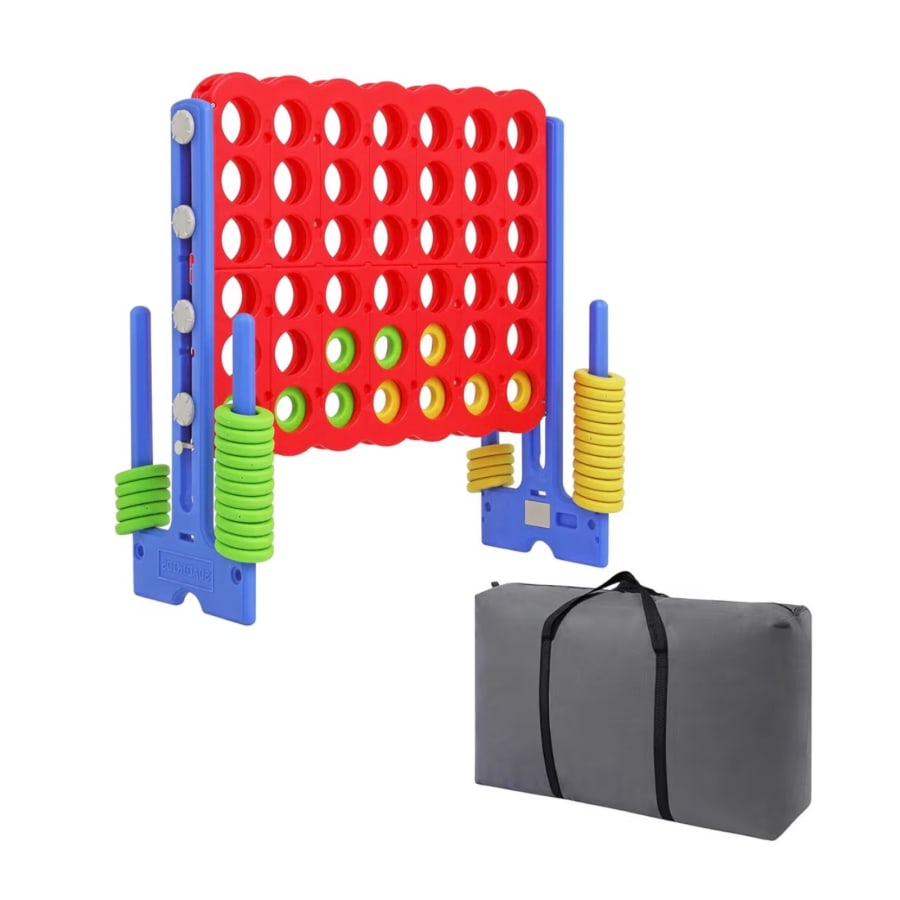 Who has the skills (and the luck) to prevail at Jumbo 4 In A Row? This giant, low-impact family favorite brings classic strategy to eye-level excitement. Fully adjustable from 2.6 feet to 5.8 feet, it’s the perfect match for toddlers reaching for victory, grandparents plotting their comeback, and teens pretending they’re not having fun. Slip the ring in the spot and the first to connect four becomes the PARTY STAR! 🌟