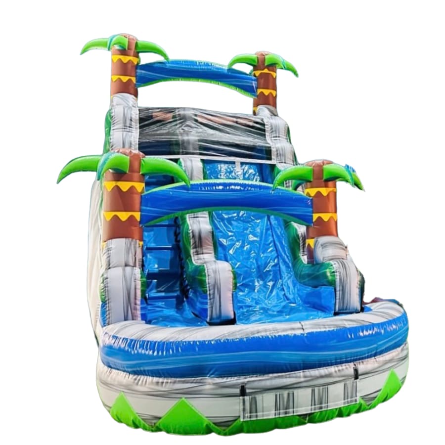 - Bright, tropical-themed 18 ft. slide with splash pool 🏝️